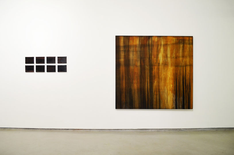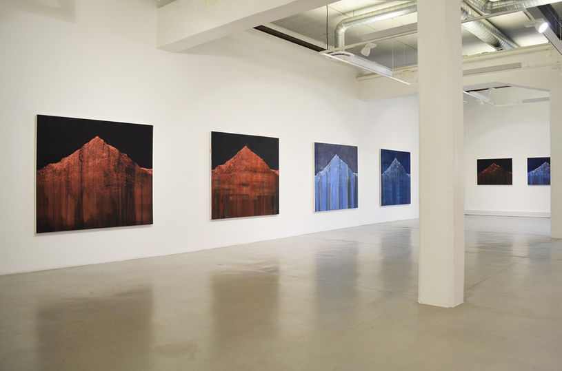 "The artist channeled exactly this mountain impulse into the work – collectively entitled ’Der Heilige Berg’ (’The Holy Mountain’). Freemantle found the Scottish mountains after being directed by Richard Demarco; and as it turns out, so did Joseph Beuys in the 70s, who declared it ’the last remaining wilderness in Northern Europe’ (images of Beuys on Rannoch Moor are incorporated into the show). The mountains, now on canvas, are painted from rocks, ochres and slates gathered from two of the ranges he’s spent time in. Freemantle would methodically grind these materials down into powder and then mix them with beeswax, turpentine, linseed oil and Damar resin. Thus, the paintings are the mountain."