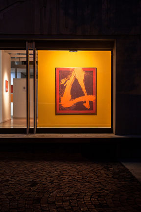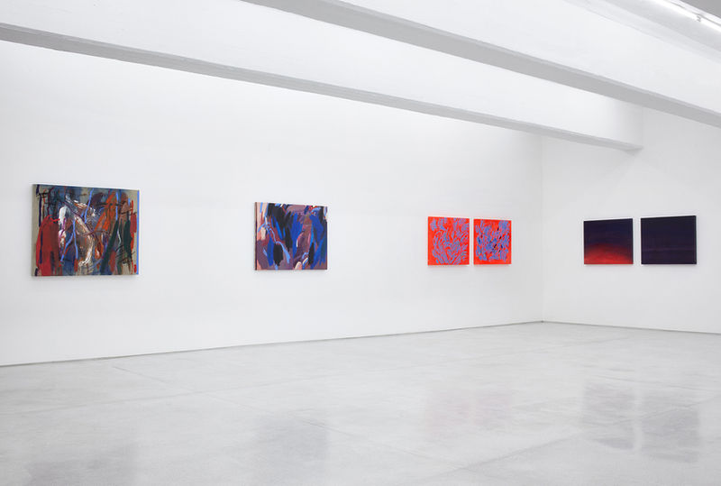 The background area of each painting is achieved slowly, over many layers of transparent oil paint, so that the surface feels resonant and alive. The brushstrokes are applied rhythmically, first vertically then horizontally then vertically again. The process is calm and reflective. The large brushstrokes on the surface arrive from a very different process. I use one of the giant paint brushes that I make myself using natural hair, bound to long broom-like handles.