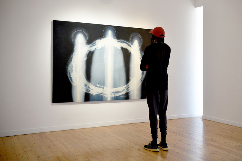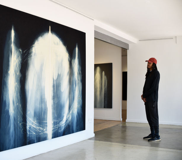 The exhibition with The Nirox Foundation presents a range of paintings made during my residency at NIROX, July & August 2022. With the Spirit Matter series, I am painting in reverse. The canvas is dyed with a dark black or indigo. I then begin bleaching parts of the surface to reveal lighter areas. The process happens slowly, in many layers, as I attempt to encourage an ethereal light into the artwork. The result is hopefully very open and suggestive of a numinous experience. The paintings are not depictions of Spirit, how can one paint the invisible? Rather, they are an evocation, an echo, a vapour. They point towards a presence you catch out of the corner of your eye, just before it slips away.