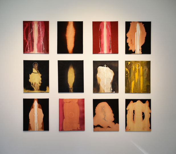 One of Gurdjieff's principal teachings is focused on the alchemical process of making a connection between one's body and higher energies. These paintings were born out of my daily practice of meditation and 'self remembering, which is at times difficult and other times rich and deep. Often during meditation or in these moments of self remembering I feel a pulsating energy, emanating both from within and from beyond my body.